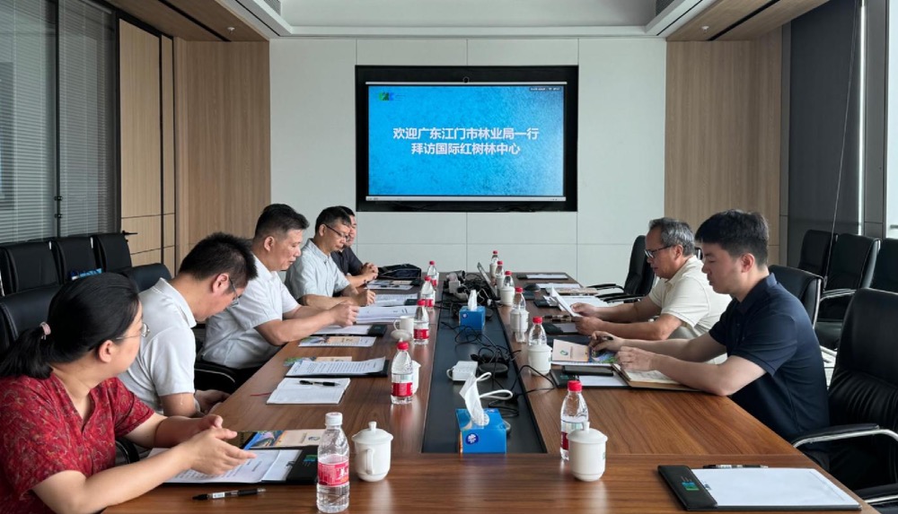 On May 9, 2025, a delegation from the Jiangmen Forestry Bureau of Guangdong Province visited the Interim Secretariat of the International Mangrove Center (IMC). The two sides held in-depth discussions on mangrove ecosystem conservation, restoration engineering practices, marine blue carbon trading, and international cooperation mechanisms.